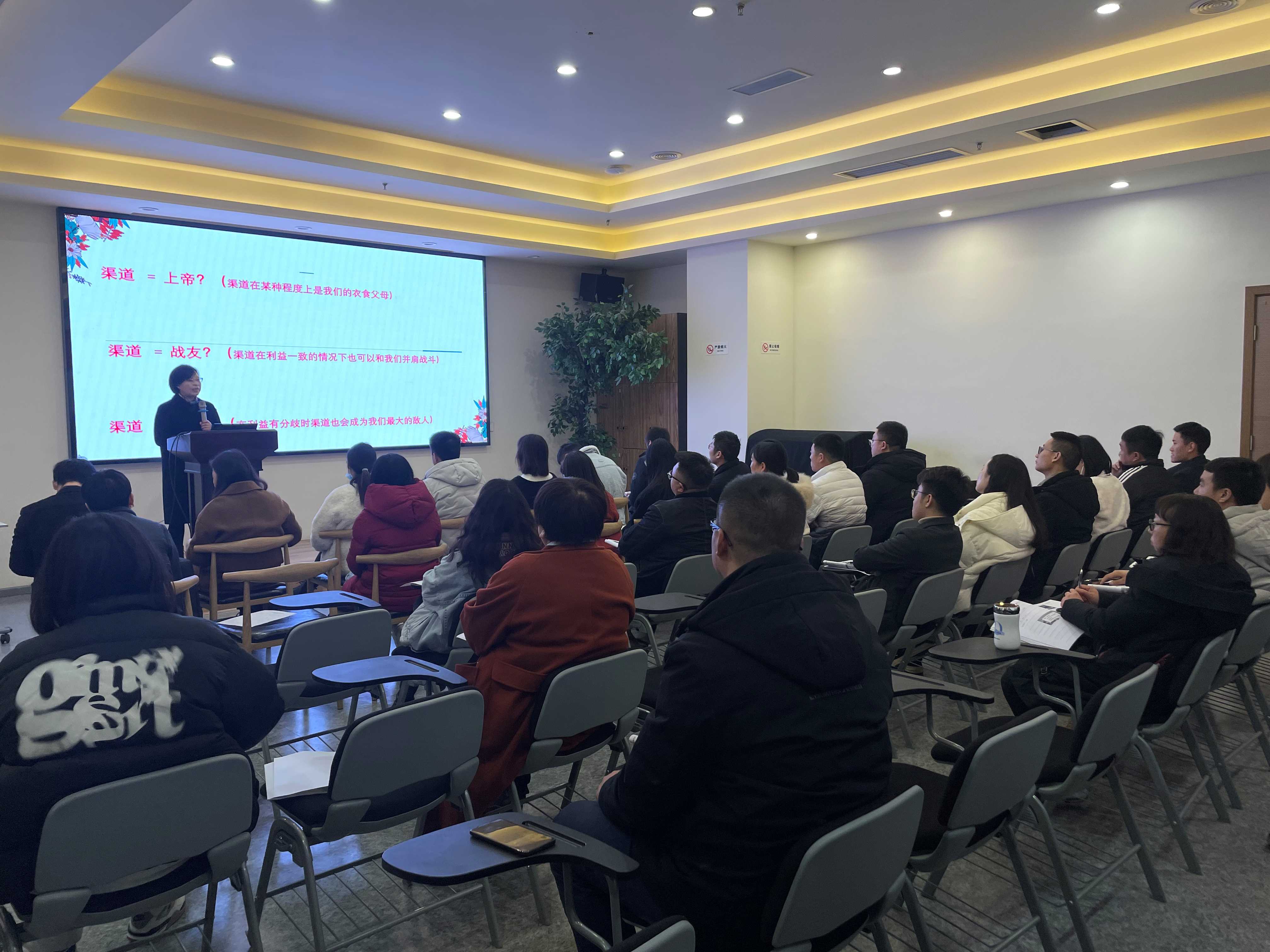 本次培訓分為兩個獨立的課題,第一個課題是由公司檢驗部銷售主管鄧莉帶來的《渠道商的挖獵》的授課,分別從渠道的定位、搭建、挖獵三個層面進行剖析: