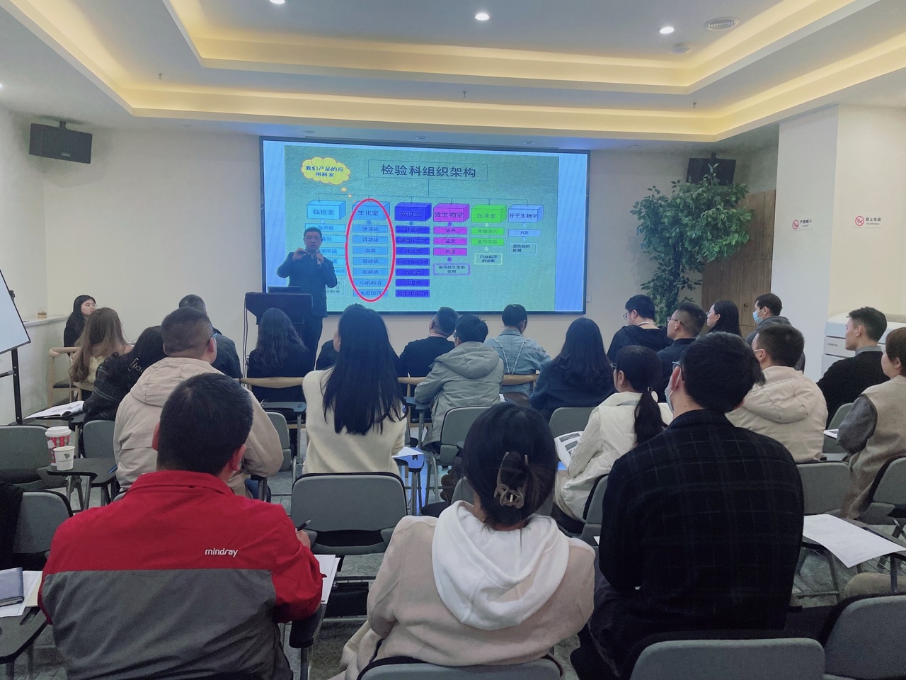 第二個課題是由檢驗(yàn)部用服經(jīng)理趙平帶來的《檢驗(yàn)科基礎(chǔ)知識》的授課,首先從檢驗(yàn)科的職能、組織結(jié)構(gòu)、工作流程等方面引導(dǎo)大家對檢驗(yàn)科有了初步的認(rèn)識,隨后通過檢驗(yàn)科的臨檢、生化室、免疫室、微生物室、分子生物學(xué)等相關(guān)部門進(jìn)行了詳盡的介紹,對于各項(xiàng)檢測項(xiàng)目和檢測方法進(jìn)行了衍生性的講解,讓大家對檢驗(yàn)科有了更加深入的了解,開拓了常規(guī)的認(rèn)知領(lǐng)域,豐富了自身的知識儲備量,整個培訓(xùn)氛圍也是輕松活潑,互動有佳。